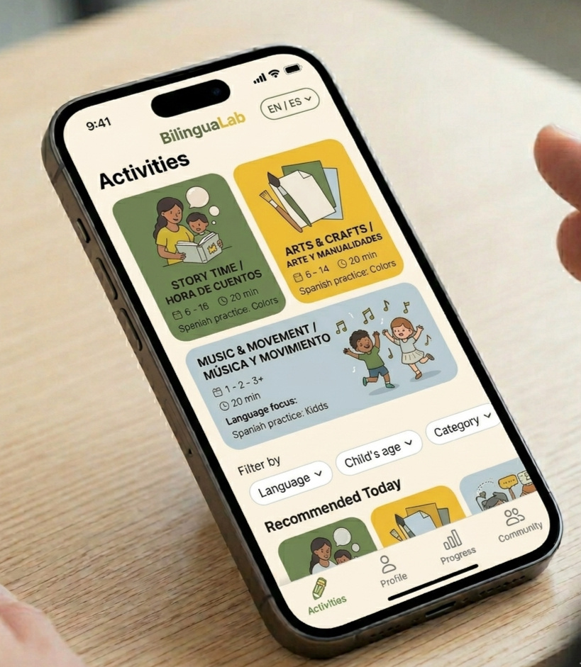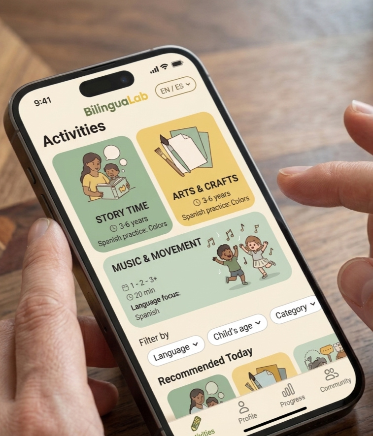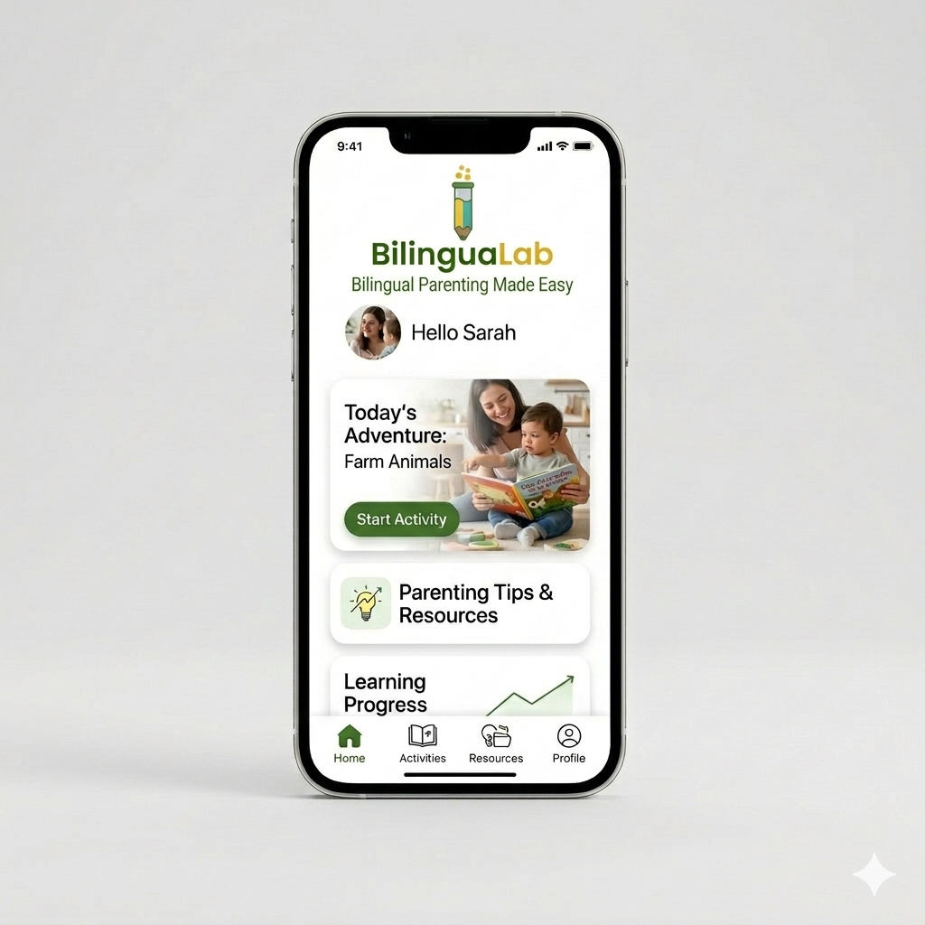 Your daily companion for raising bilingual kids.BilinguaLab gives parents simple tools, science-based guidance, and playful activities to help children develop two languages naturally.No teaching experience required.